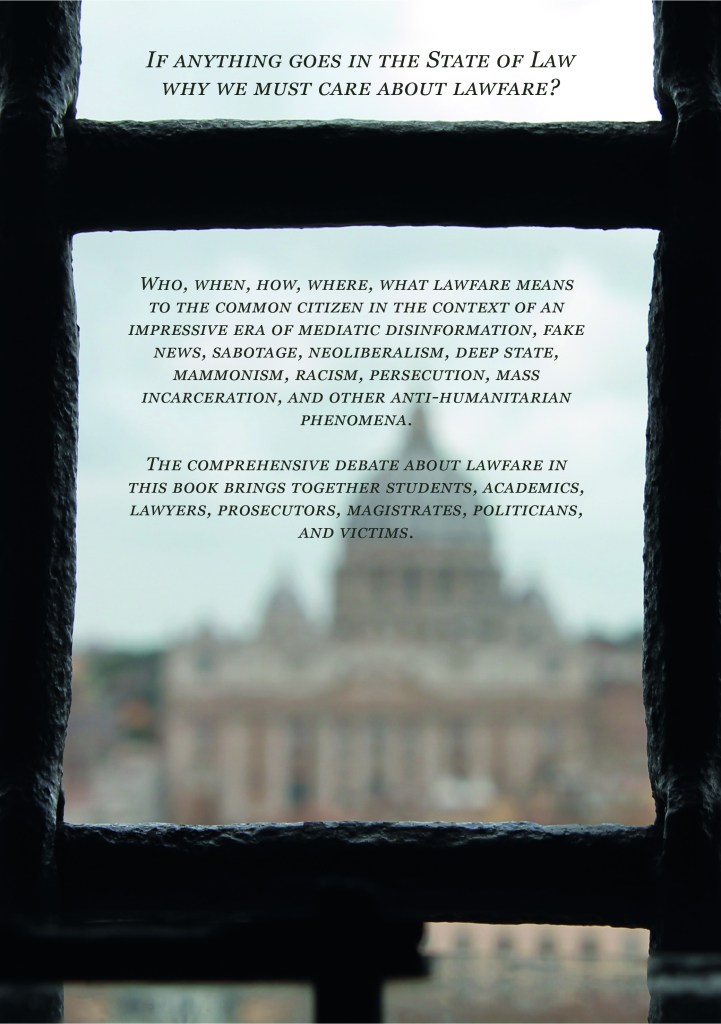 In any case, in order to fight injustices, one of the ways is to know how lawfare practices work. These are practices that involve sabotage, persecution, misinformation, corruption, manipulation, torture, and much injustice. The power of lawfare is such that it transforms the Rule of Law into a State of Exception, a Policialesque State. For those who are Brazilian, it is easy to see this in the last six years at least, since the coup of 2016, although it is something that had been orchestrated for decades. It’s not a conspiracy theory. It is real practice. To know more about it, just read on and if you are in Brasilia, attend this November 28th the first meeting of the Lawfare Nunca Mais debaters network. There will be dozens of authorities, academics, specialists, students, and, above all, lawfare targets, alive, because many have already died from the torture imposed on them. Several books will be launched, telling stories and promoting the theoretical and historical development of the subject of lawfare. One of them is LAWFARE – AN ELITE WEAPON FOR DEMOCRACY DESTRUCTION (415 pages. Editora Egressos. Goiânia-GO). The meeting will be held at the University of Brasília, at the Darcy Ribeiro Memorial, starting at 7:00pm (Brasília time). You can see the event online here.